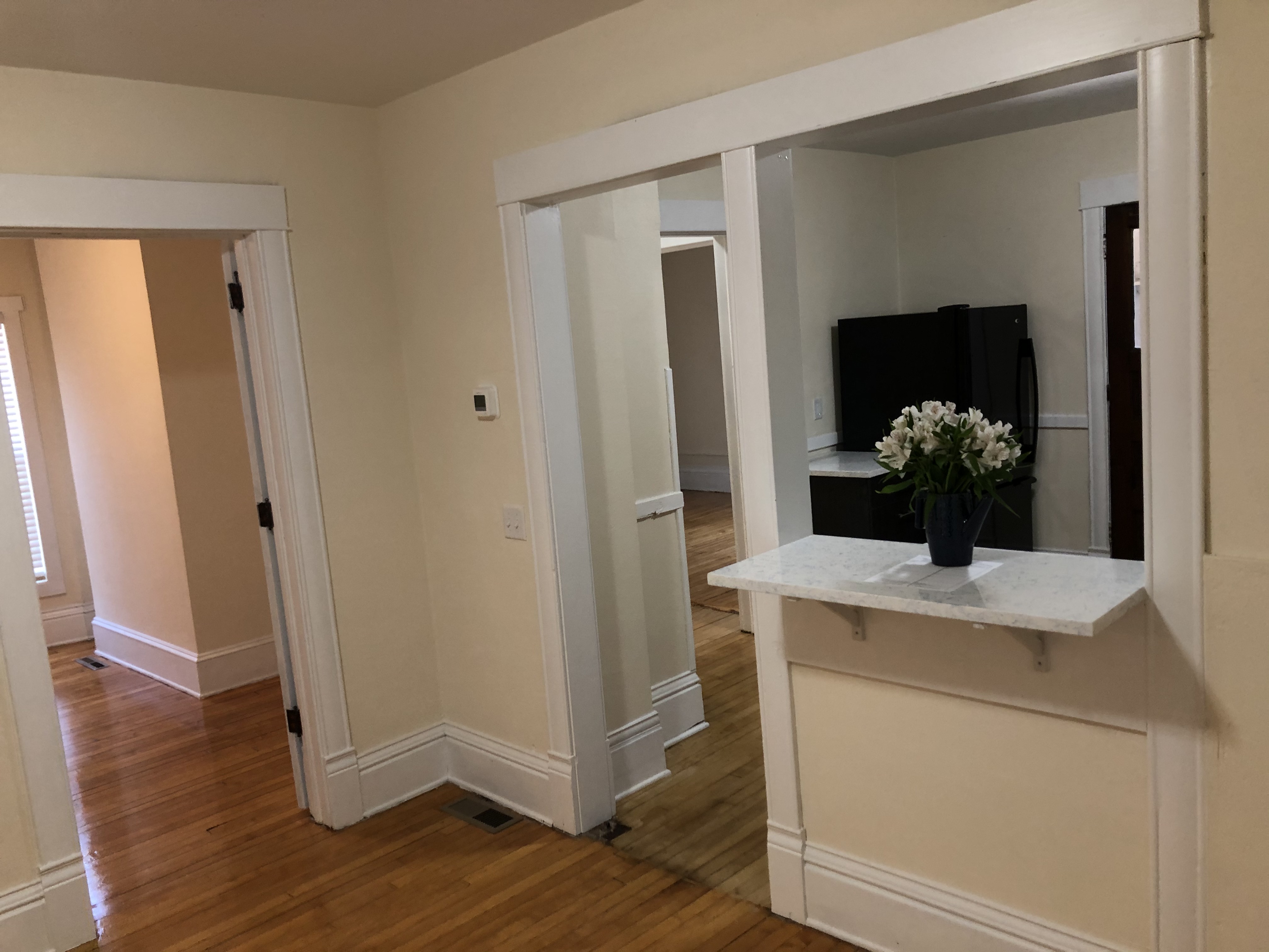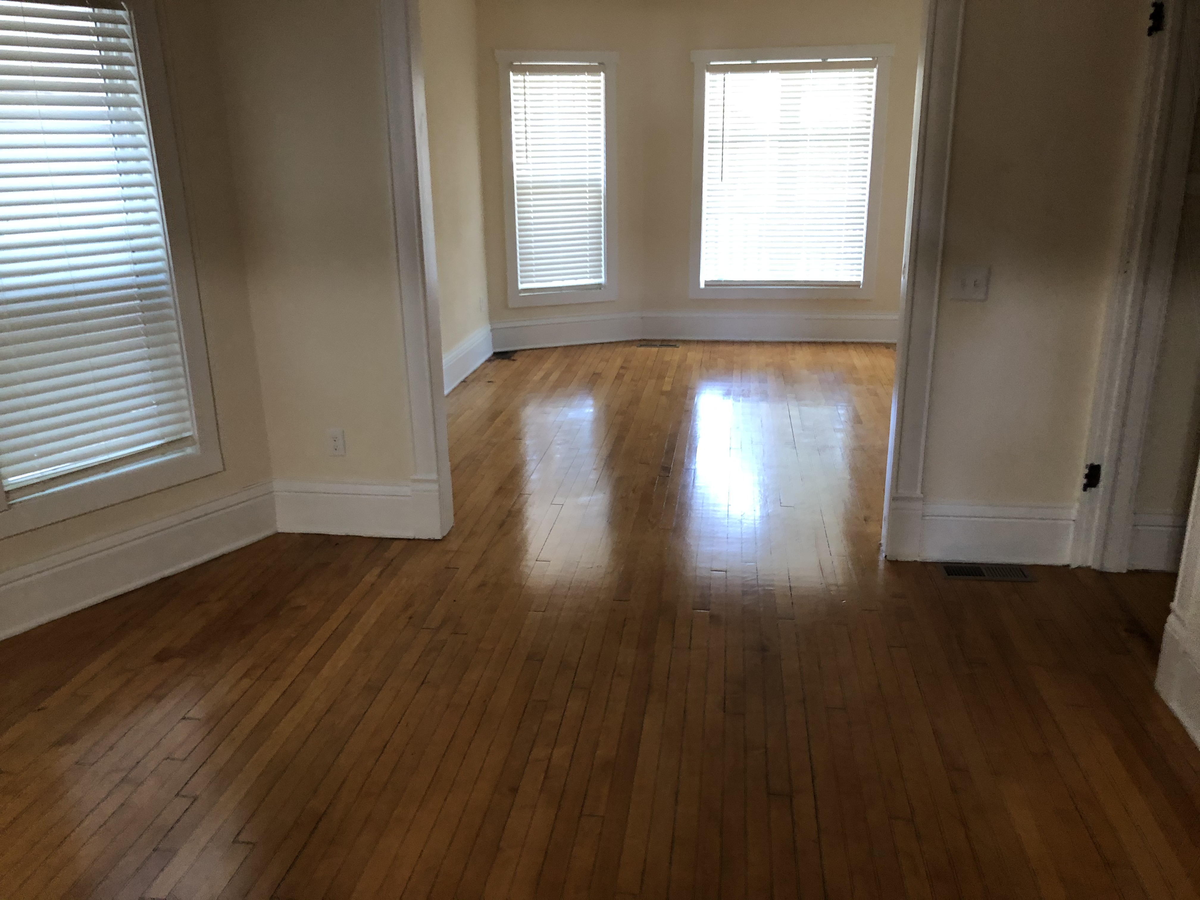This is a newly fully renovated 1st floor flat. Spacious and large 2 bedroom 1 bath, open floor plan. Renovated kitchen with updated appliances, tile shower and bathroom, living dining area. Hardwood floors throughout. Large living for family, couple or great big living for one! Large front porch. New windows. AC in unit. Pet friendly. No utilities included.